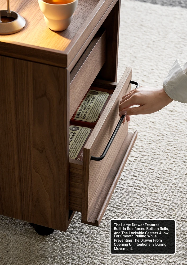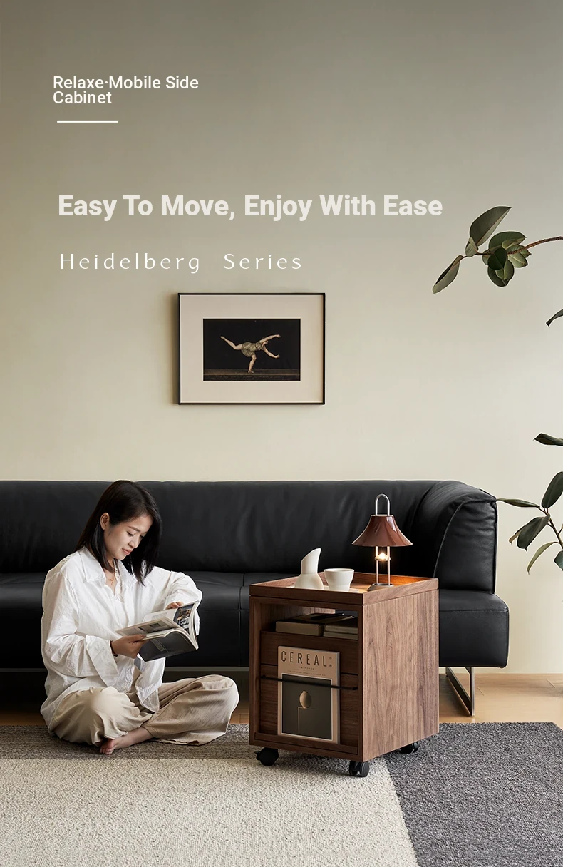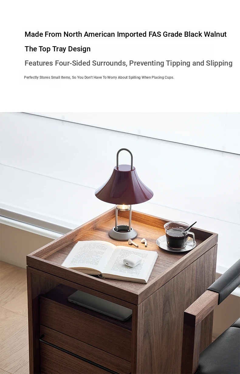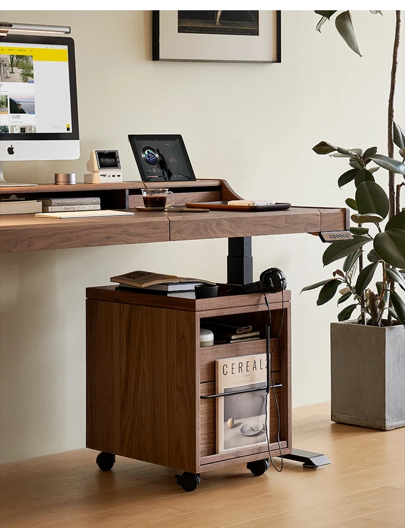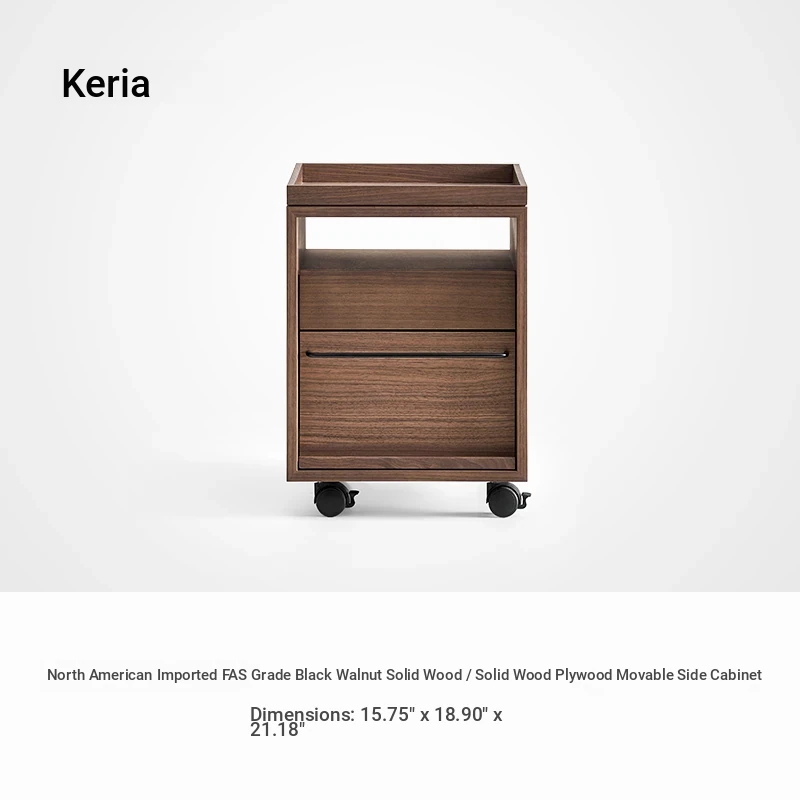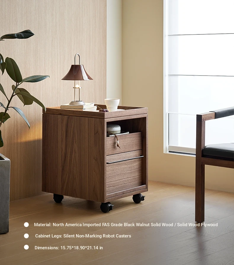 Kena Mobile Side Cabinet Sofa Office Desk - North American Black Walnut Solid Wood Storage Unit for Versatile Use