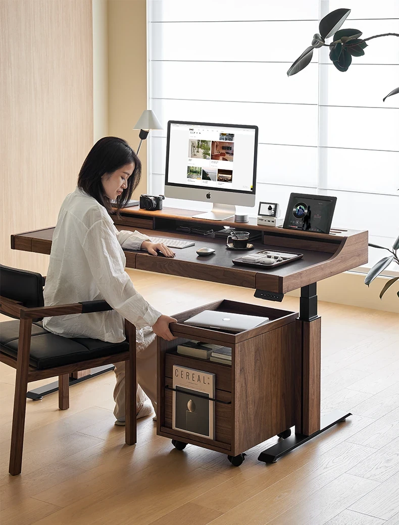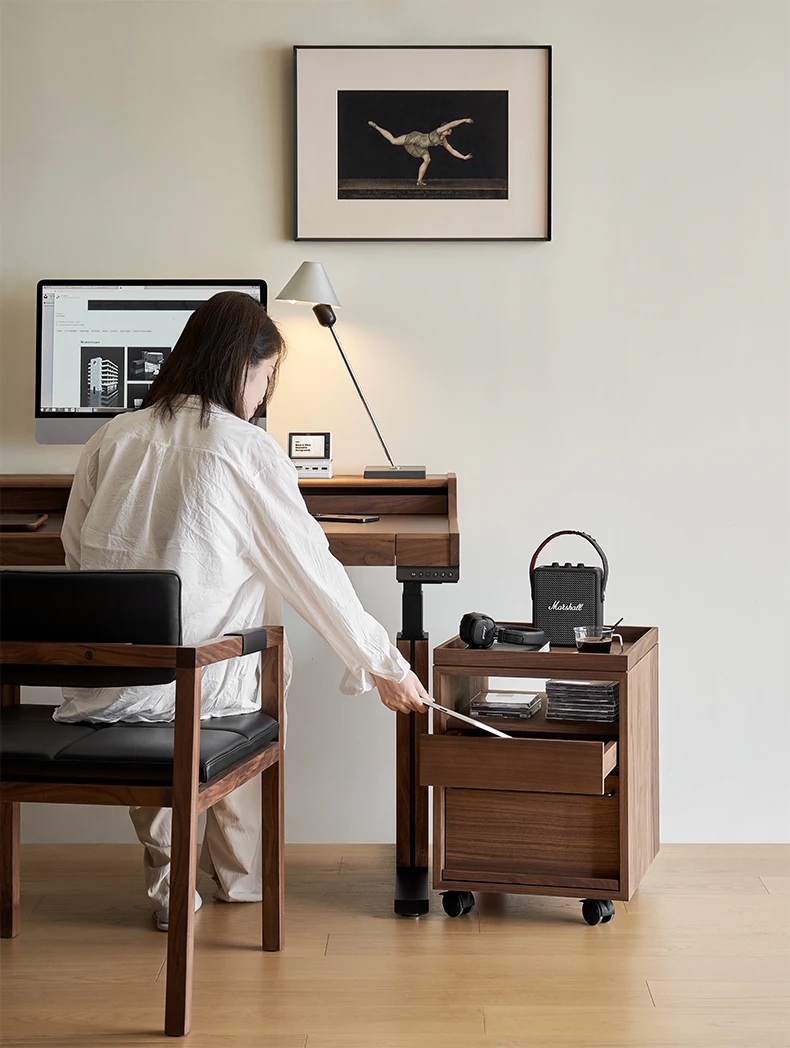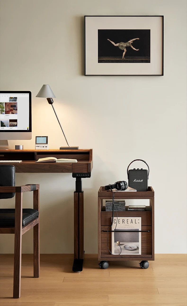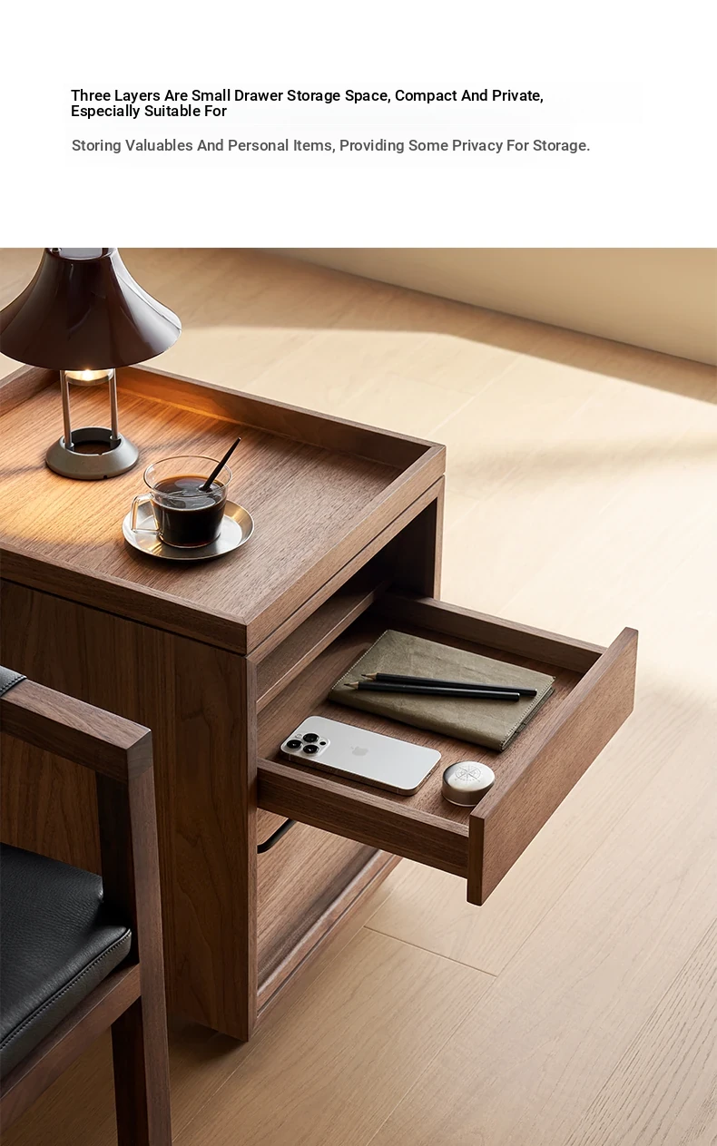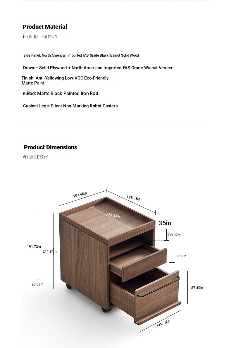 Kena Mobile Side Cabinet Sofa Office Desk - North American Black Walnut Solid Wood Storage Unit for Versatile Use