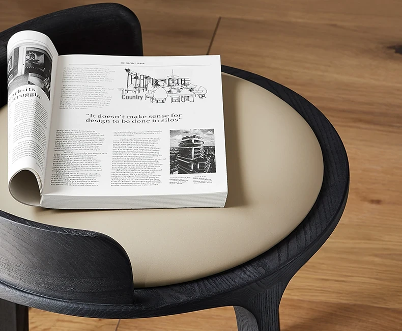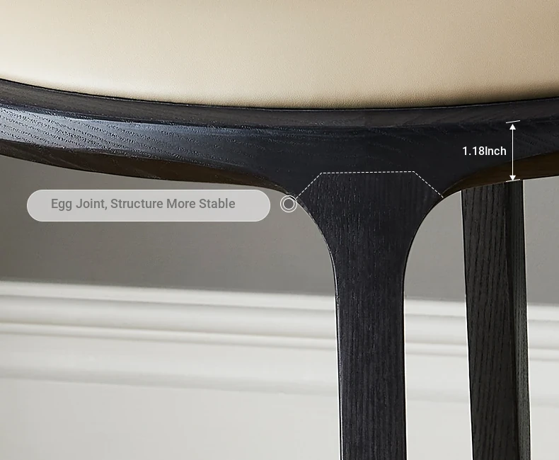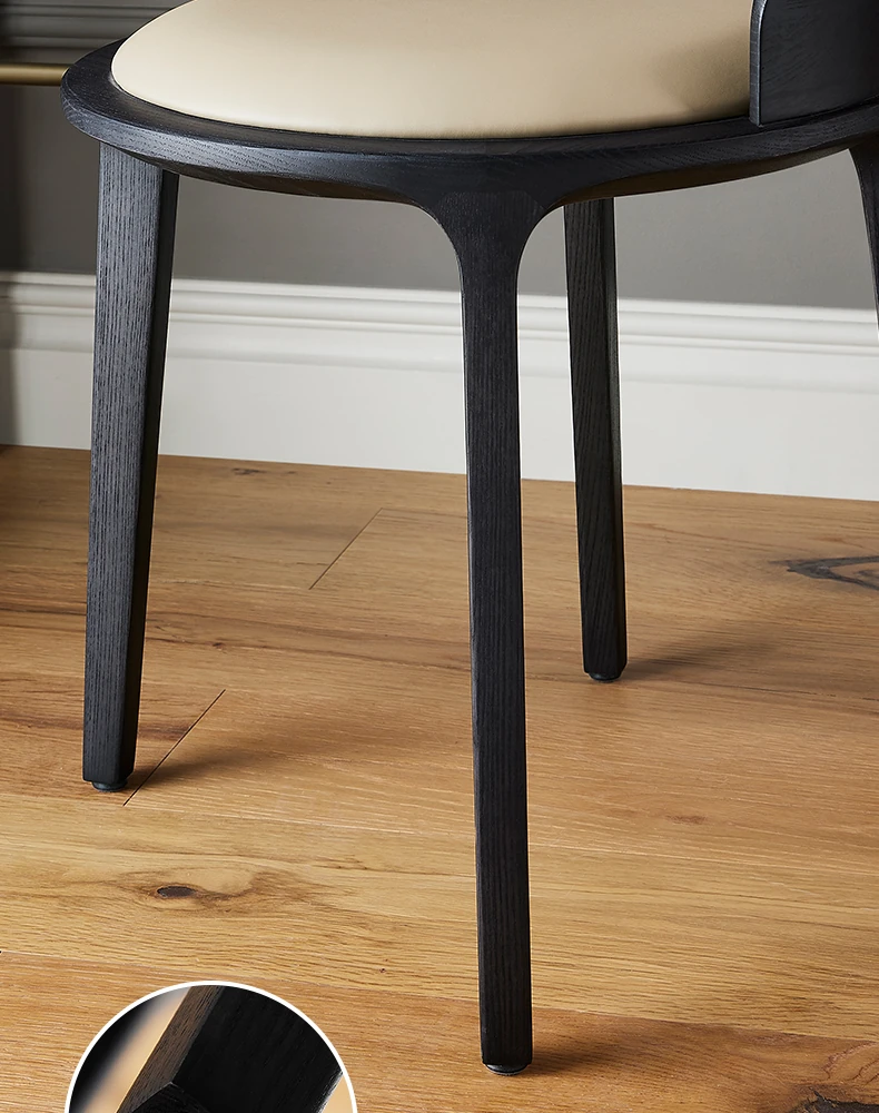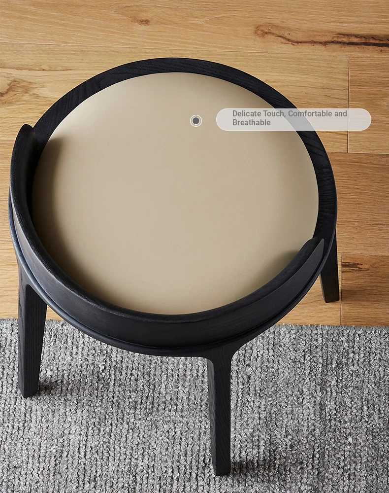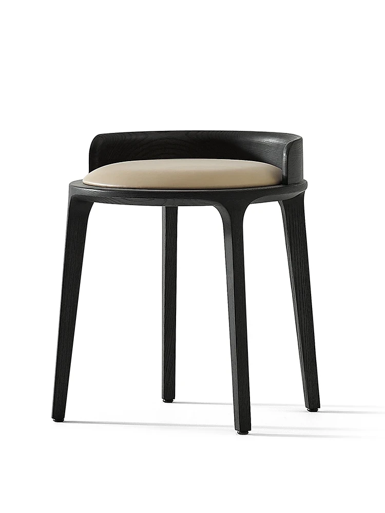 Kena/Dek Solid Wood Genuine Leather Vanity Stool with Backrest - Modern Minimalist Makeup Chair for Balcony & Bedroom - Stylish and Comfortable Seating Solution for Your Space