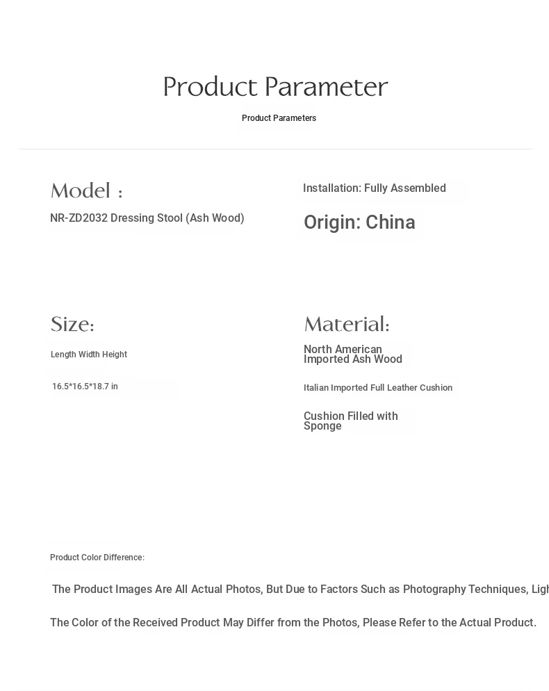 [North American Import ash] makeup stool In Stock