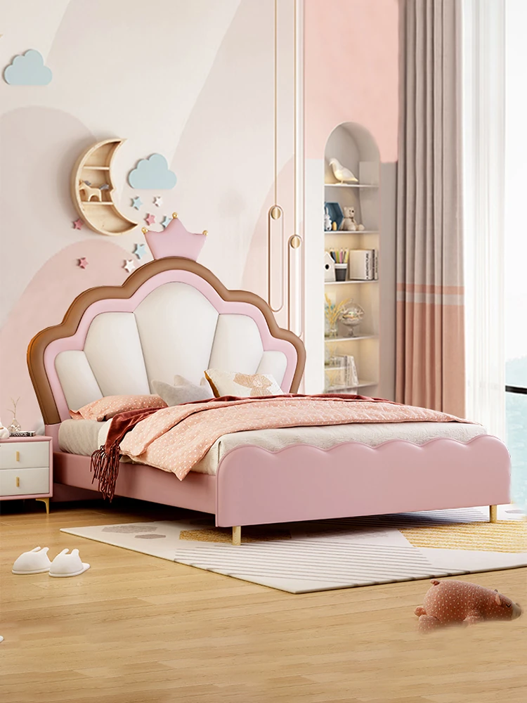 Modern Minimalist Princess Bed for Girls - 1.5m & 1.35m Crown Storage Bed, Stylish Floating Bed for Boys, Perfect for Your Child's Dream Room!