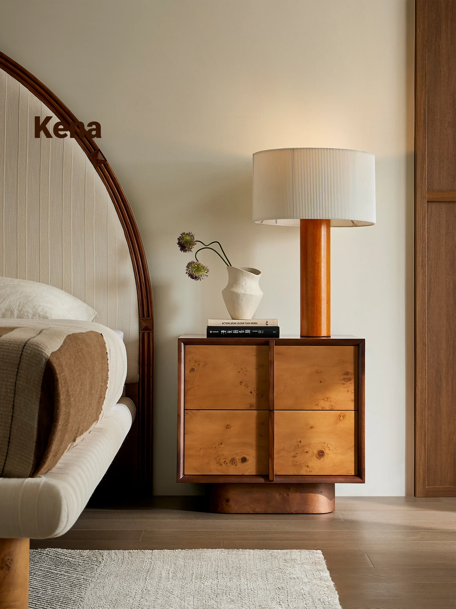 Kena Vintage French-style Solid Wood Nightstand - Designer Bedside Storage Cabinet for Home Bedroom, Perfect for Organizing Your Space with Timeless Charm