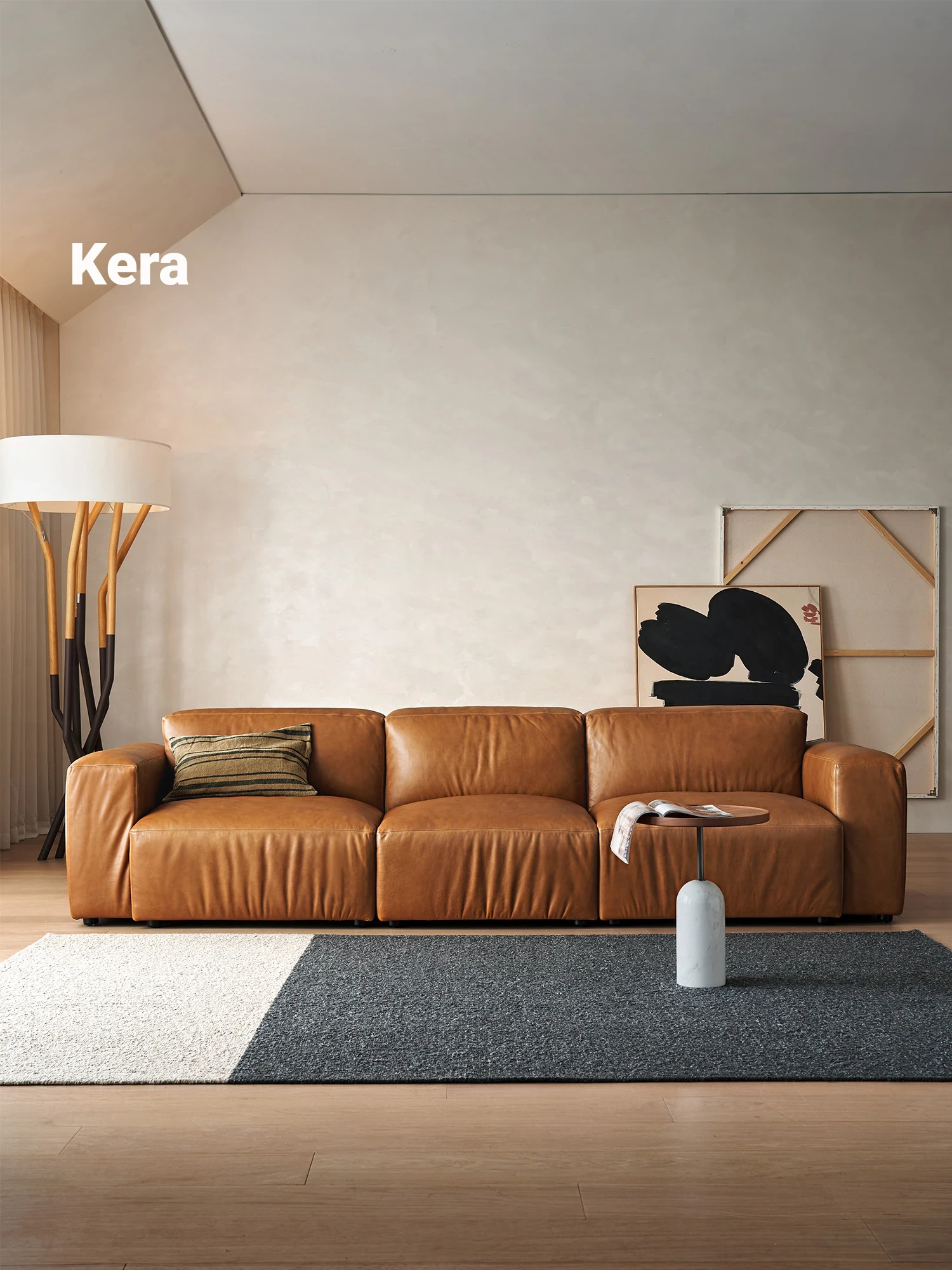 Kena Amber Sofa - Luxurious Full Genuine Leather Retro Design, Spacious Deep Seat, Italian Minimalist Style, Crafted from Top-Grain Cowhide for Ultimate Comfort in Your Living Room.