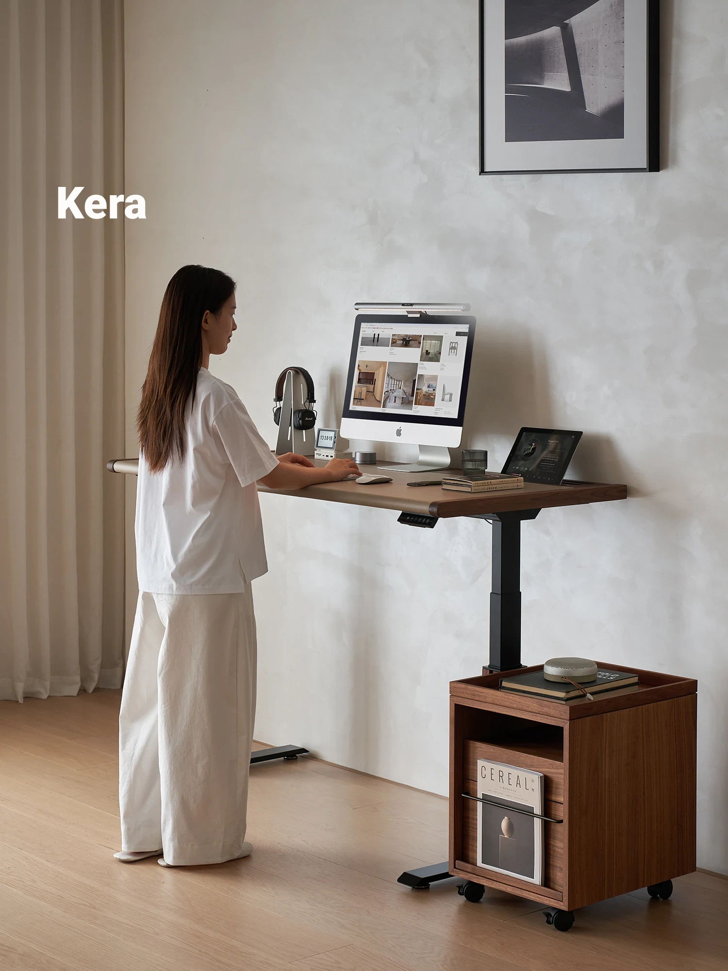 Kena Adjustable Electric Standing Desk - Black Walnut Solid Wood Home Office Computer Table - Ergonomic Workstation for Comfort and Productivity