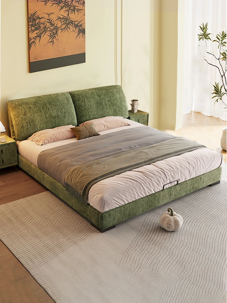 Modern Chenille French Cream Fabric Bed - Luxurious 1.8m Double Bed for Master Bedroom, Elegant Soft-Padded Wedding Bed, Minimalist Design