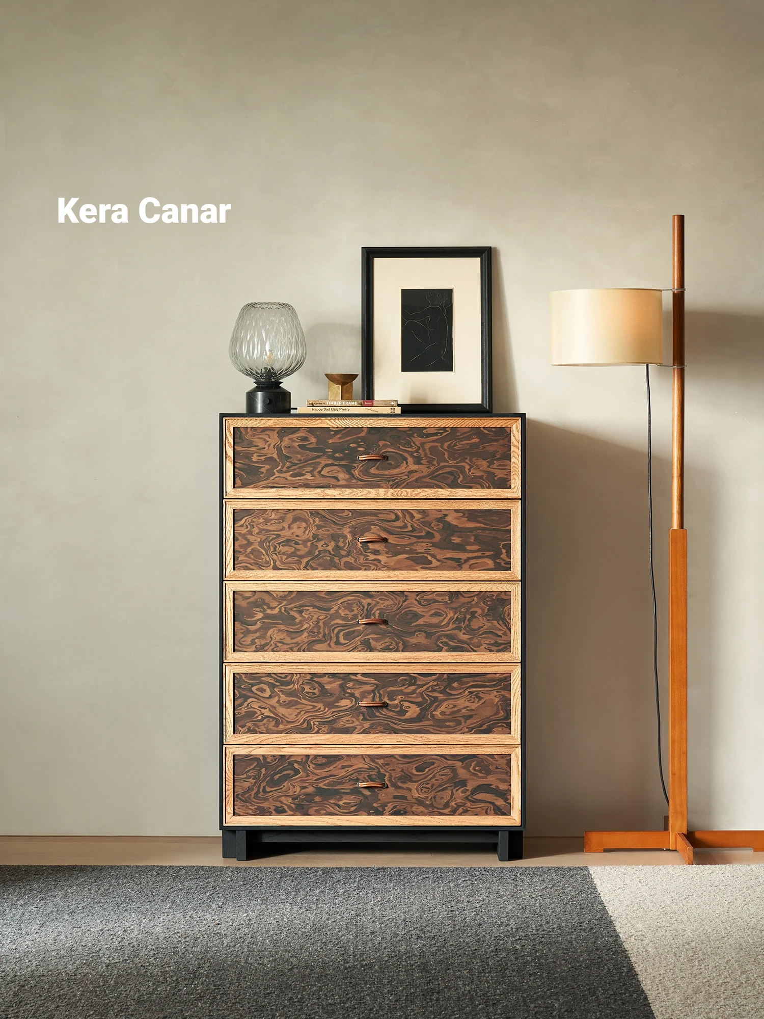 Kena Designer Collaboration - Vintage Solid Wood Sideboard in Black Walnut for Living Room Storage - Stylish and Functional Mid-Century Chest of Drawers