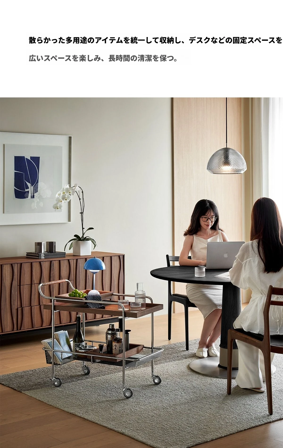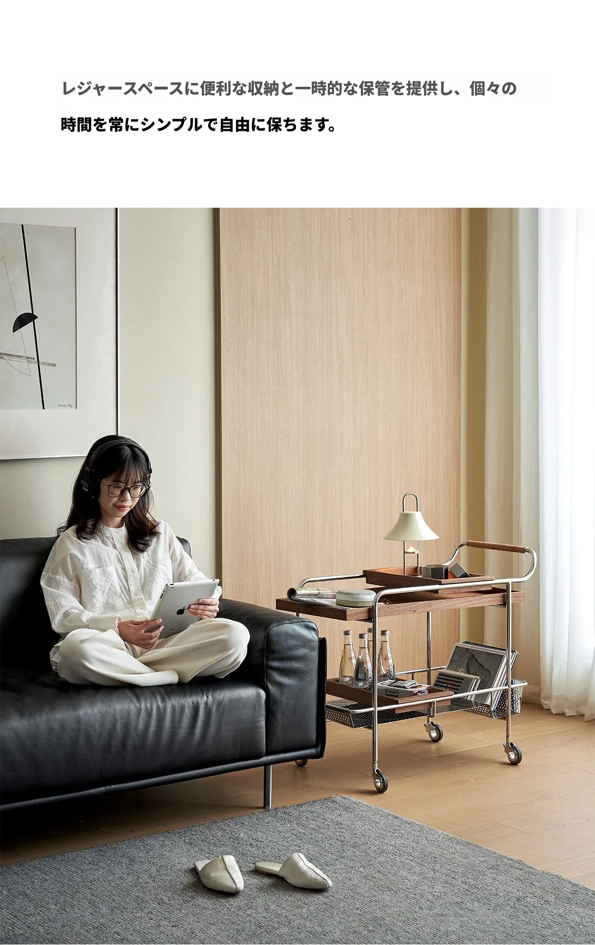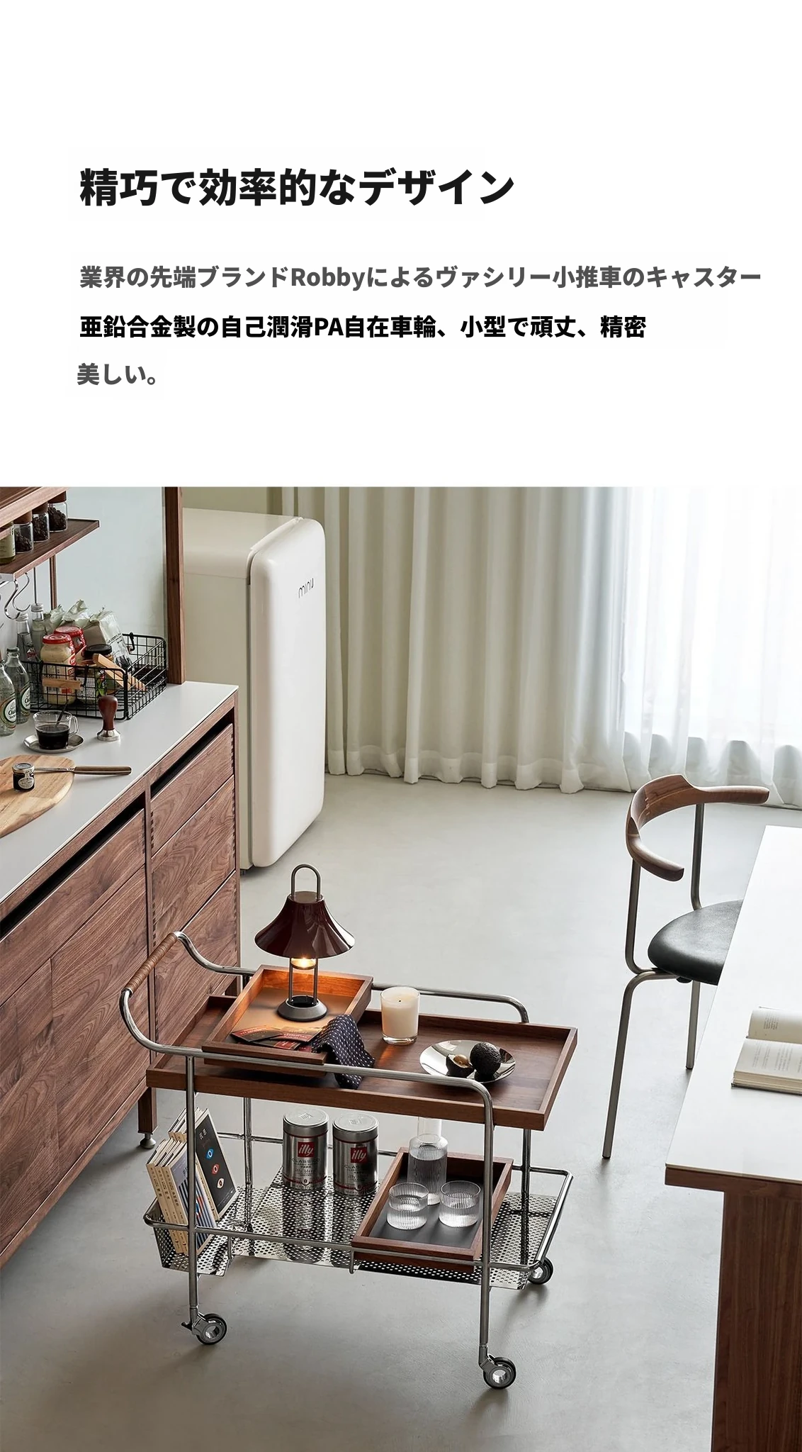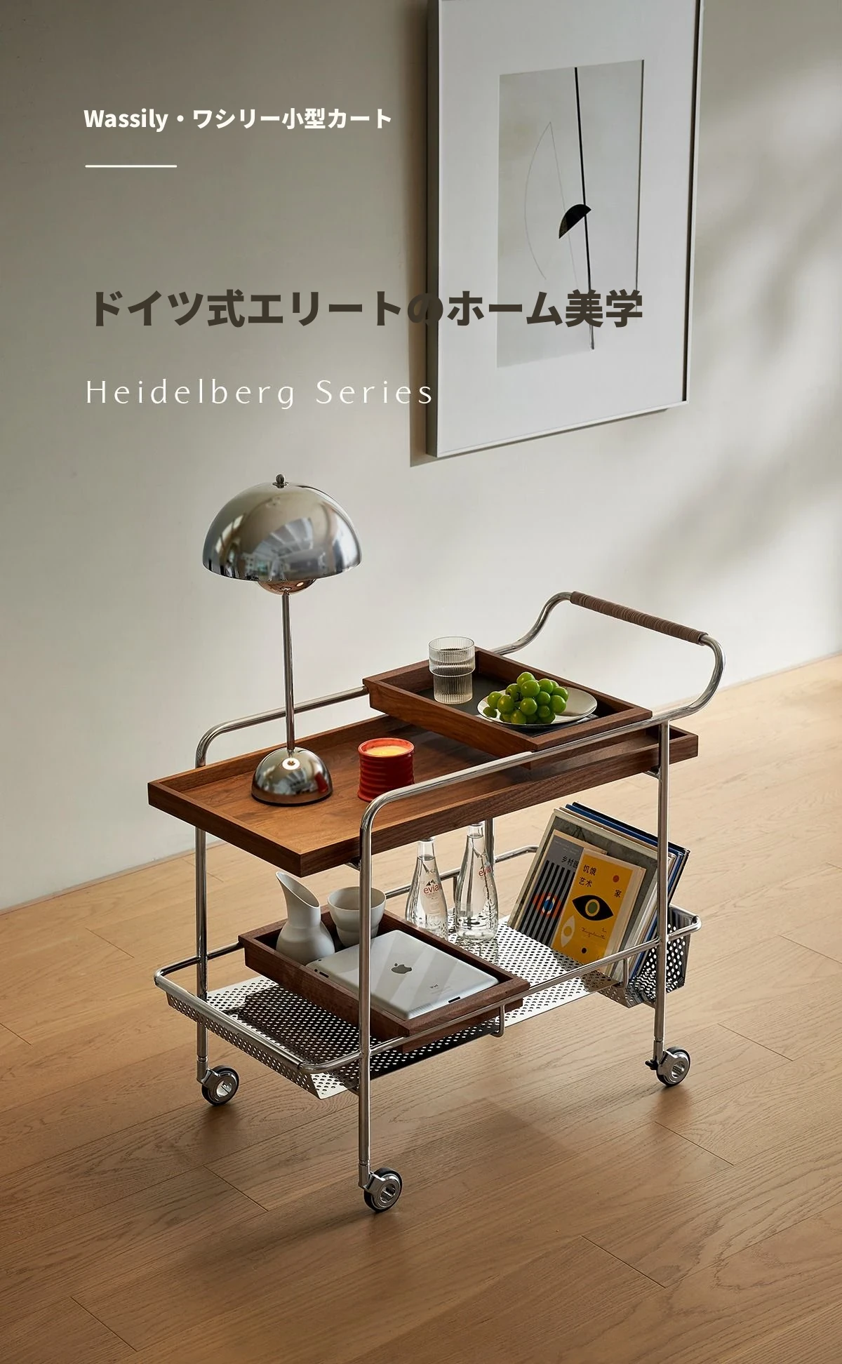 Kena(ケナ)/ヴァシリ小型キャリーカート 北欧ブラックウォールナット 無垢材製 モバイルサイドテーブル リビングルーム用 バウハウススタイルのティーテーブルZ