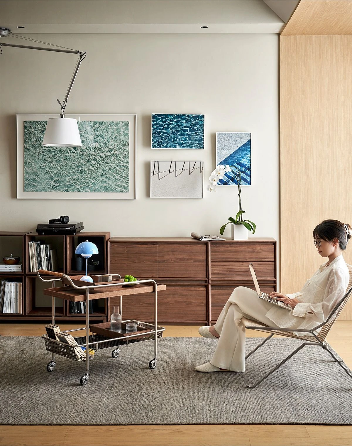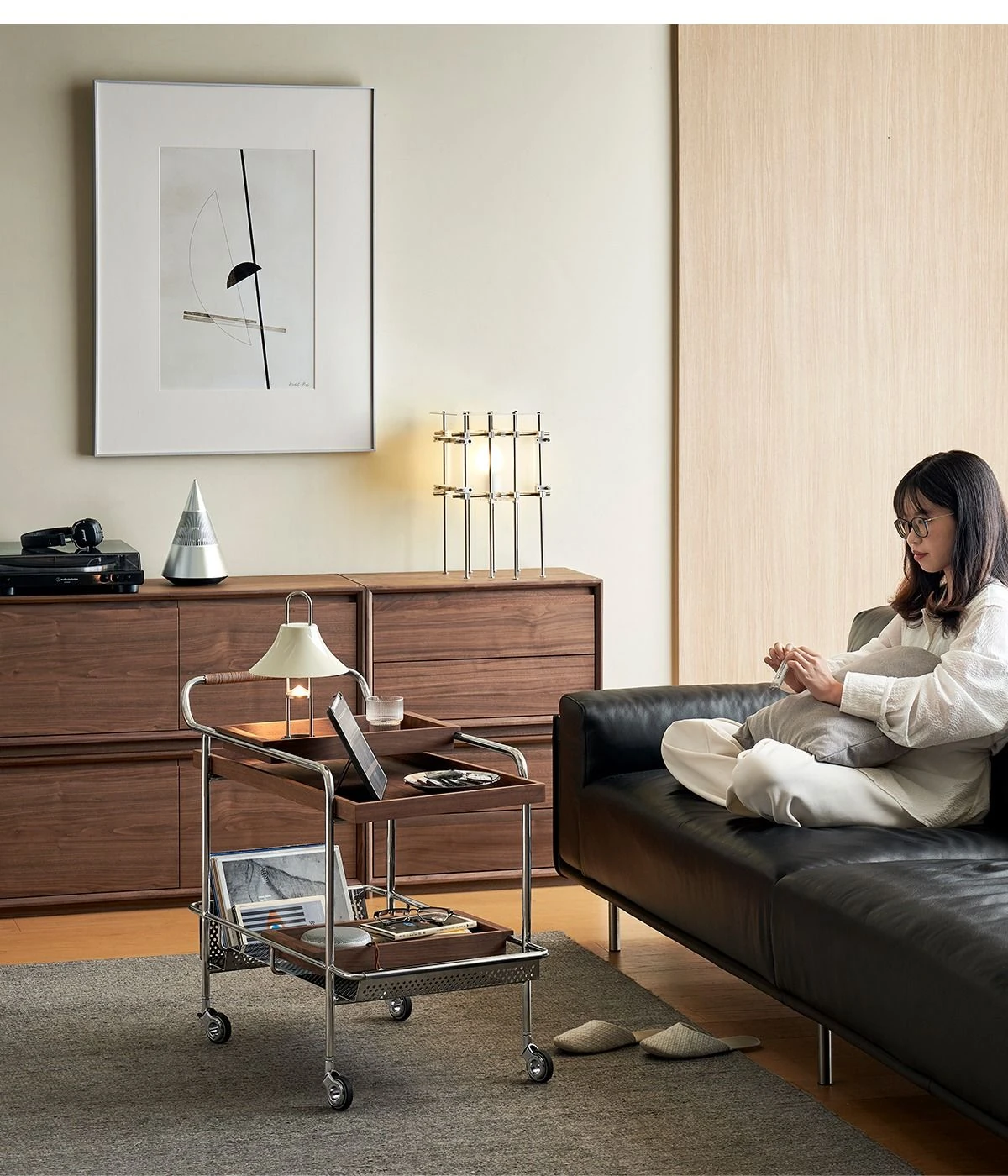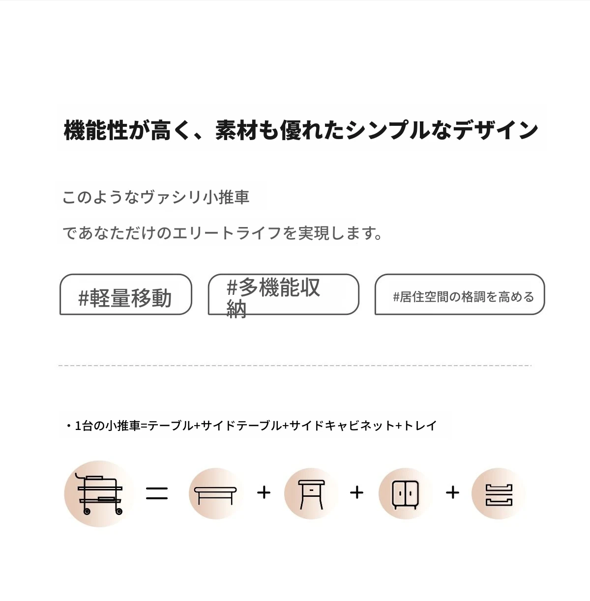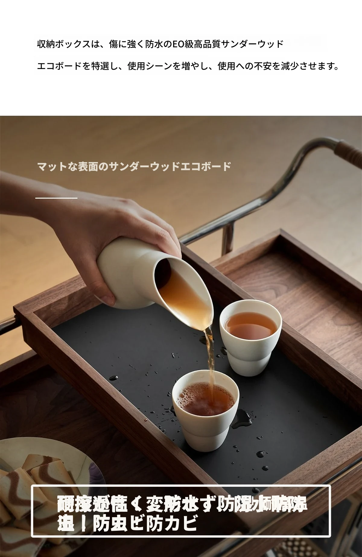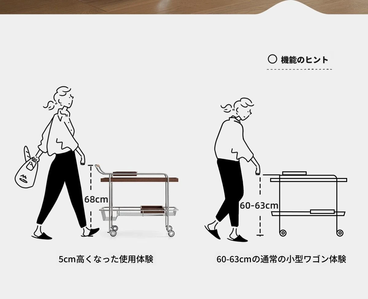Kena(ケナ)/ヴァシリ小型キャリーカート 北欧ブラックウォールナット 無垢材製 モバイルサイドテーブル リビングルーム用 バウハウススタイルのティーテーブルZ