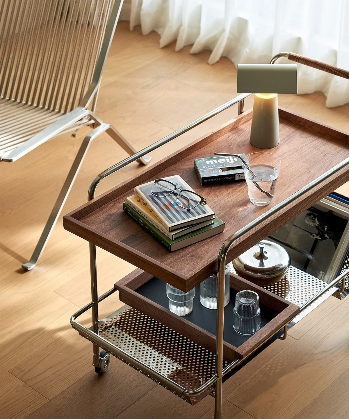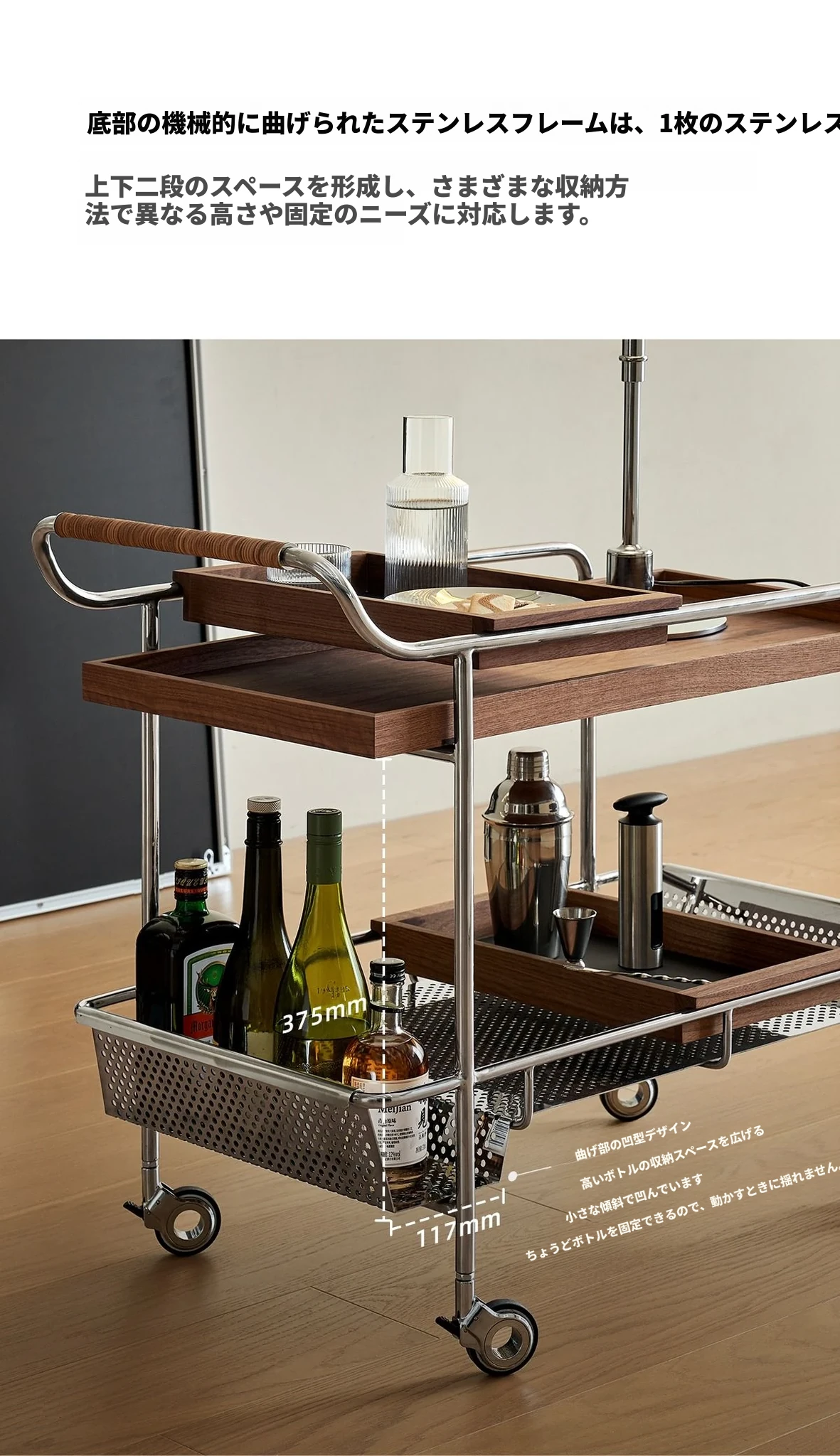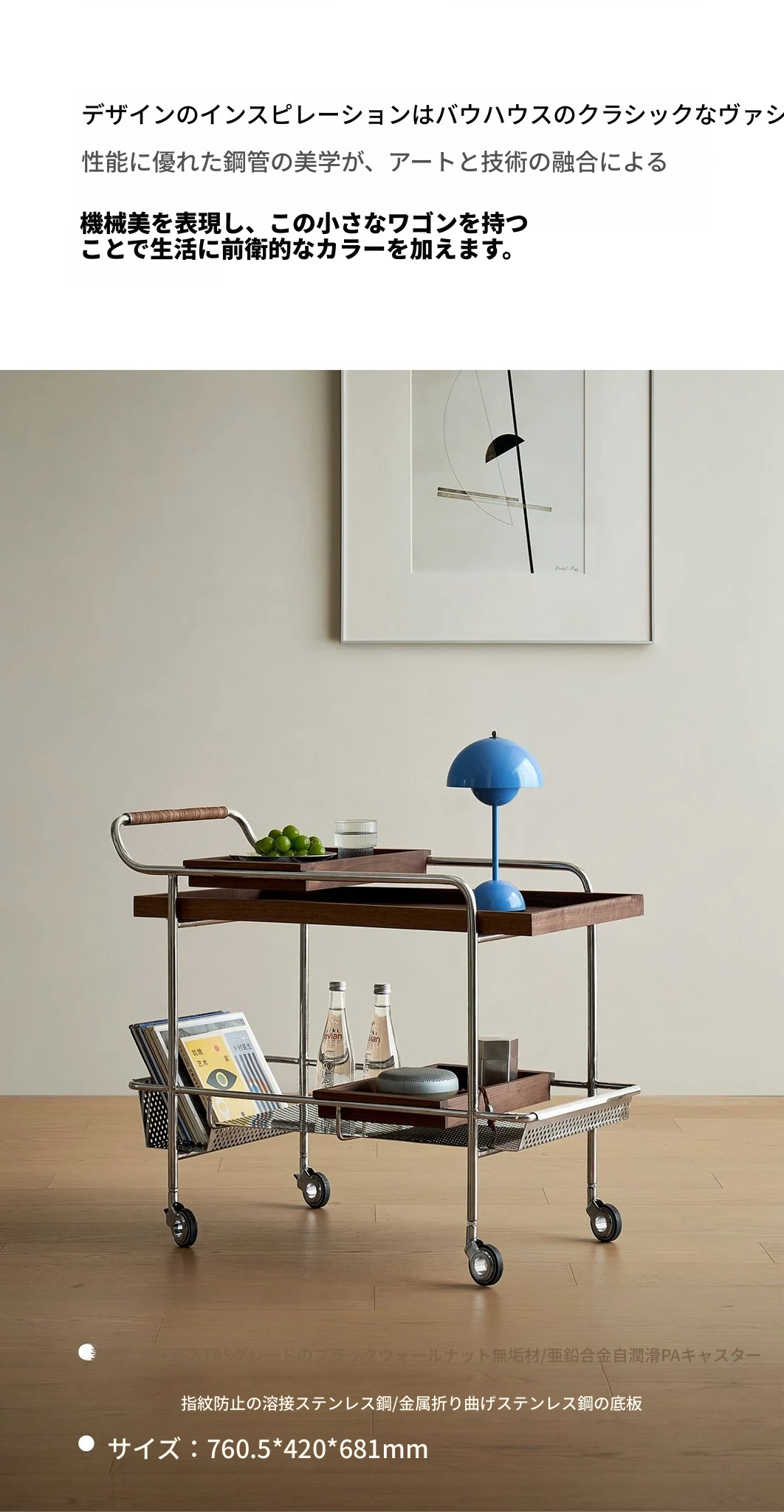 【北米ブラックウォールナット-ステンレススチールフレーム】小型カート 在庫あり