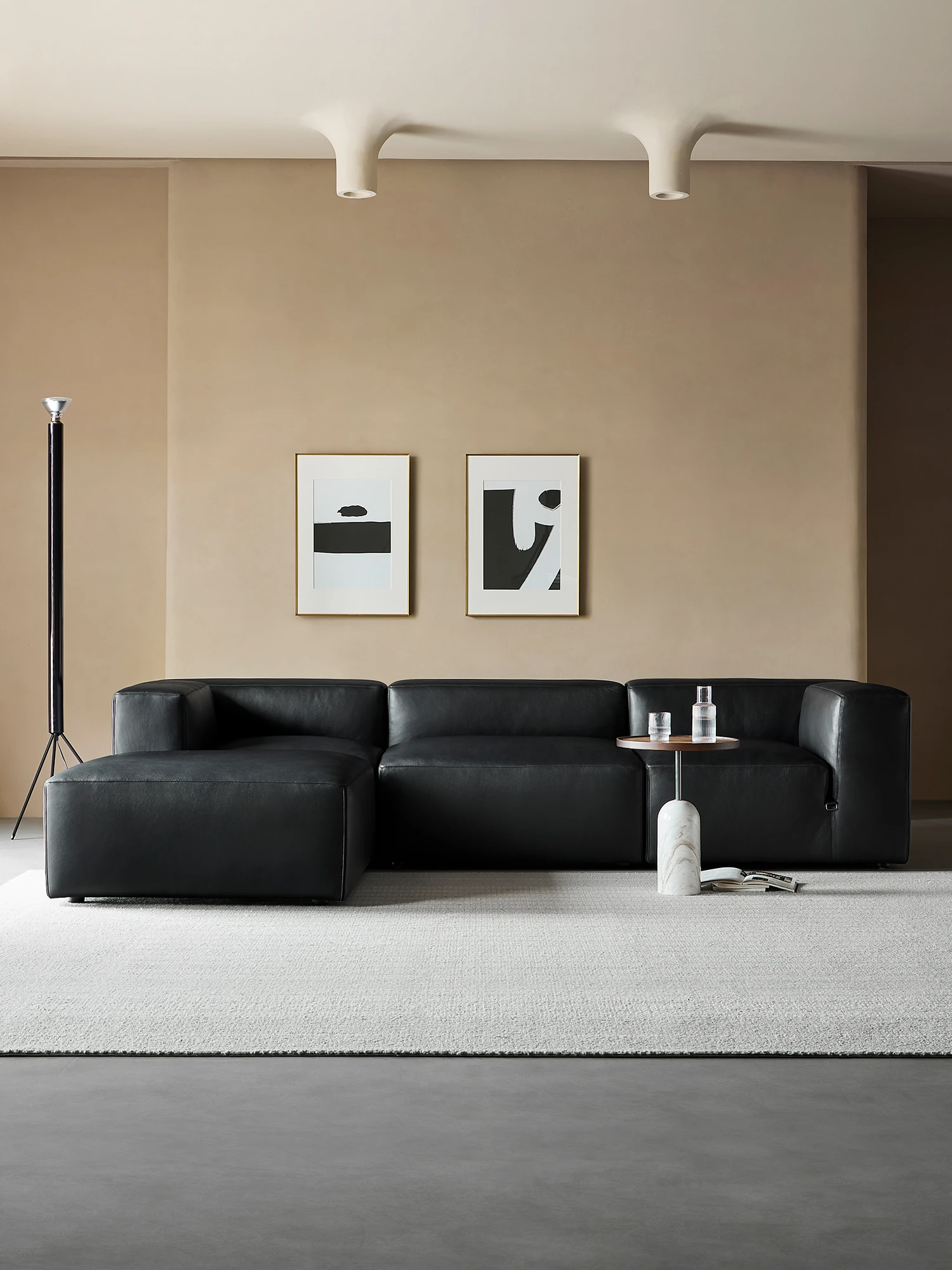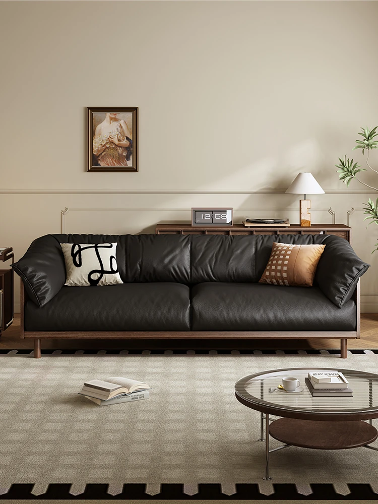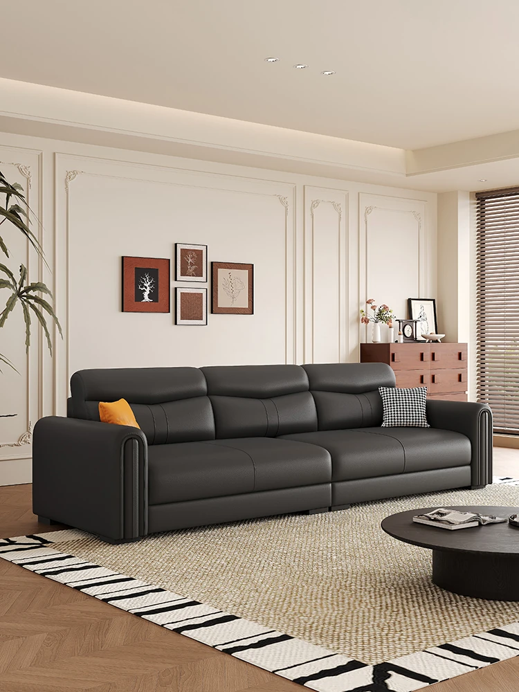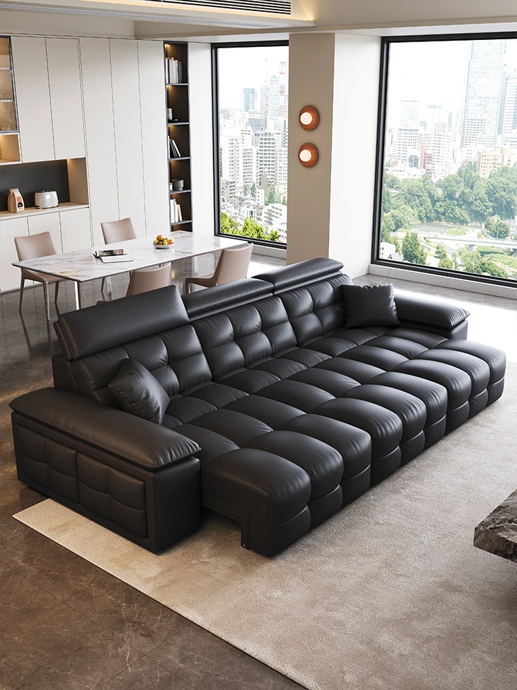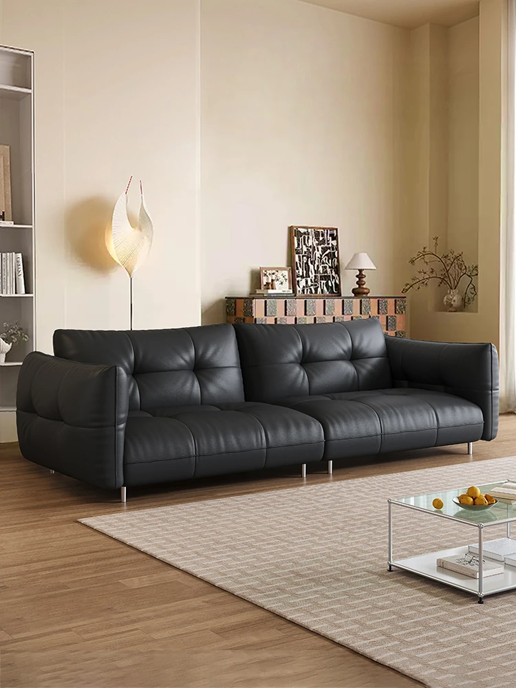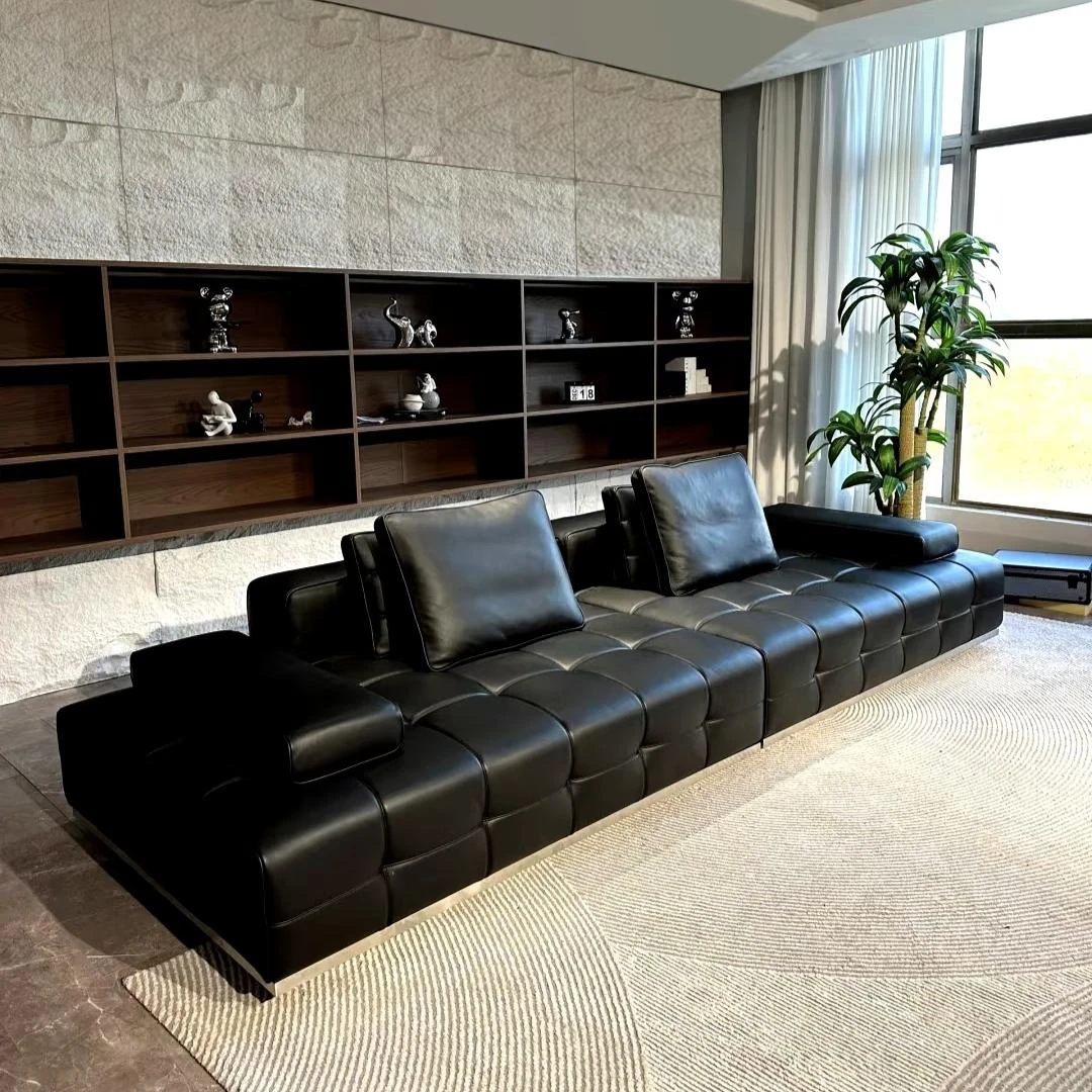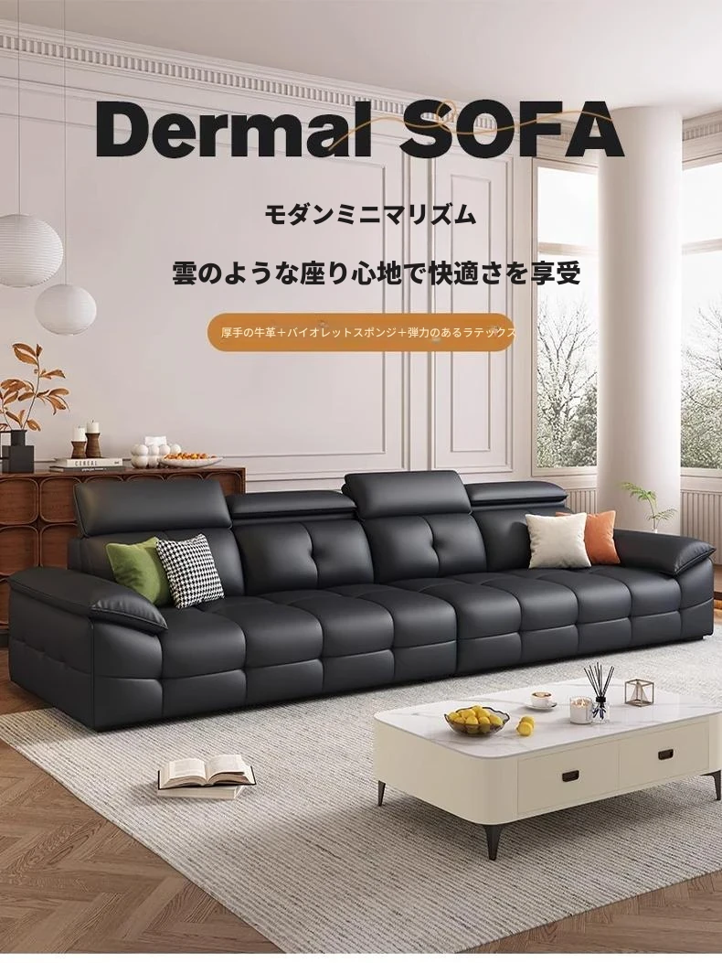 イタリアンミニマリズムの高級ブラックローランス直排本革ソファ。最高級の牛革を使用した、別荘や大平層のリビングにぴったりな洗練されたコンビネーション。おしゃれで快適な空間を演出します!