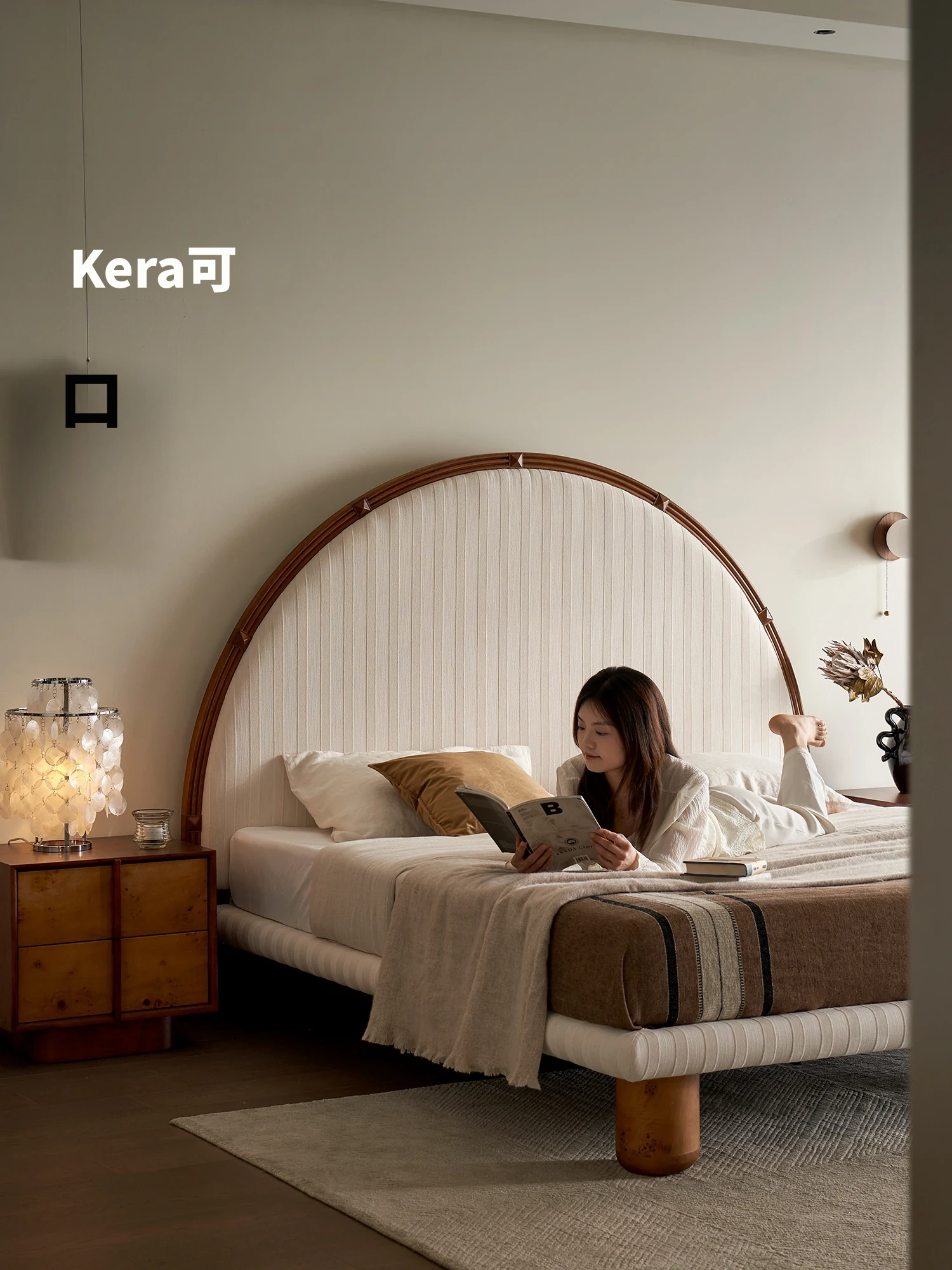 Kena可纳/泊月床 フランス風レトロデザイン!1.8mダブル布製古風主寝室用ラウンドハイベッドスクリーンZで、優雅な眠りをお楽しみください!