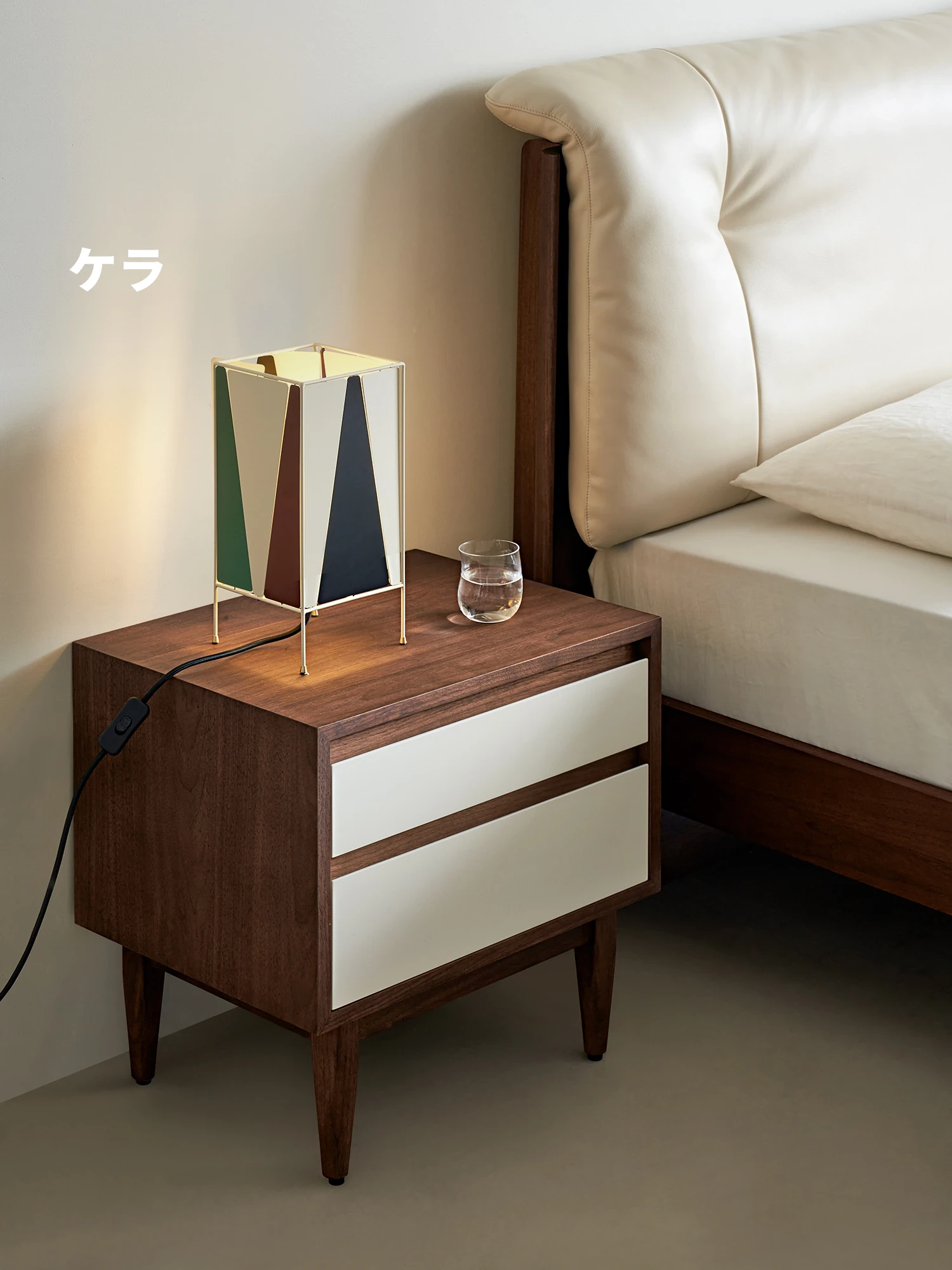 Kena可纳/梵诺デザインのビンテージ風ナチュラルウォールナットベッドサイドキャビネット - シンプルでスタイリッシュ、あなたの寝室に完璧な収納ソリューションを提供!