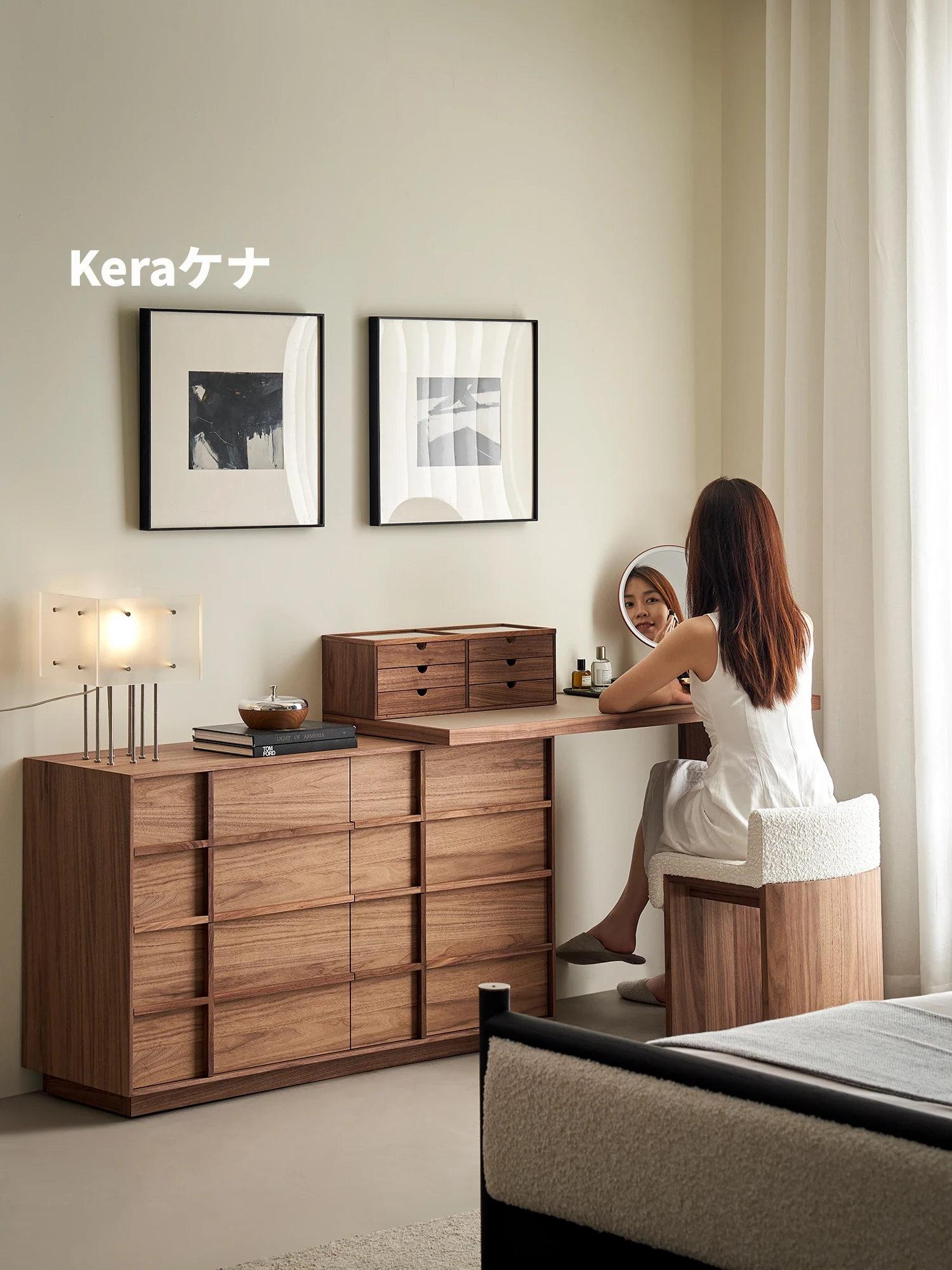 Kena可纳/拾野 北米産ブラックウォルナットのヴィンテージスタイル一体型ドレッサー&チェスト コーナーデザインで洗練された空間を演出!