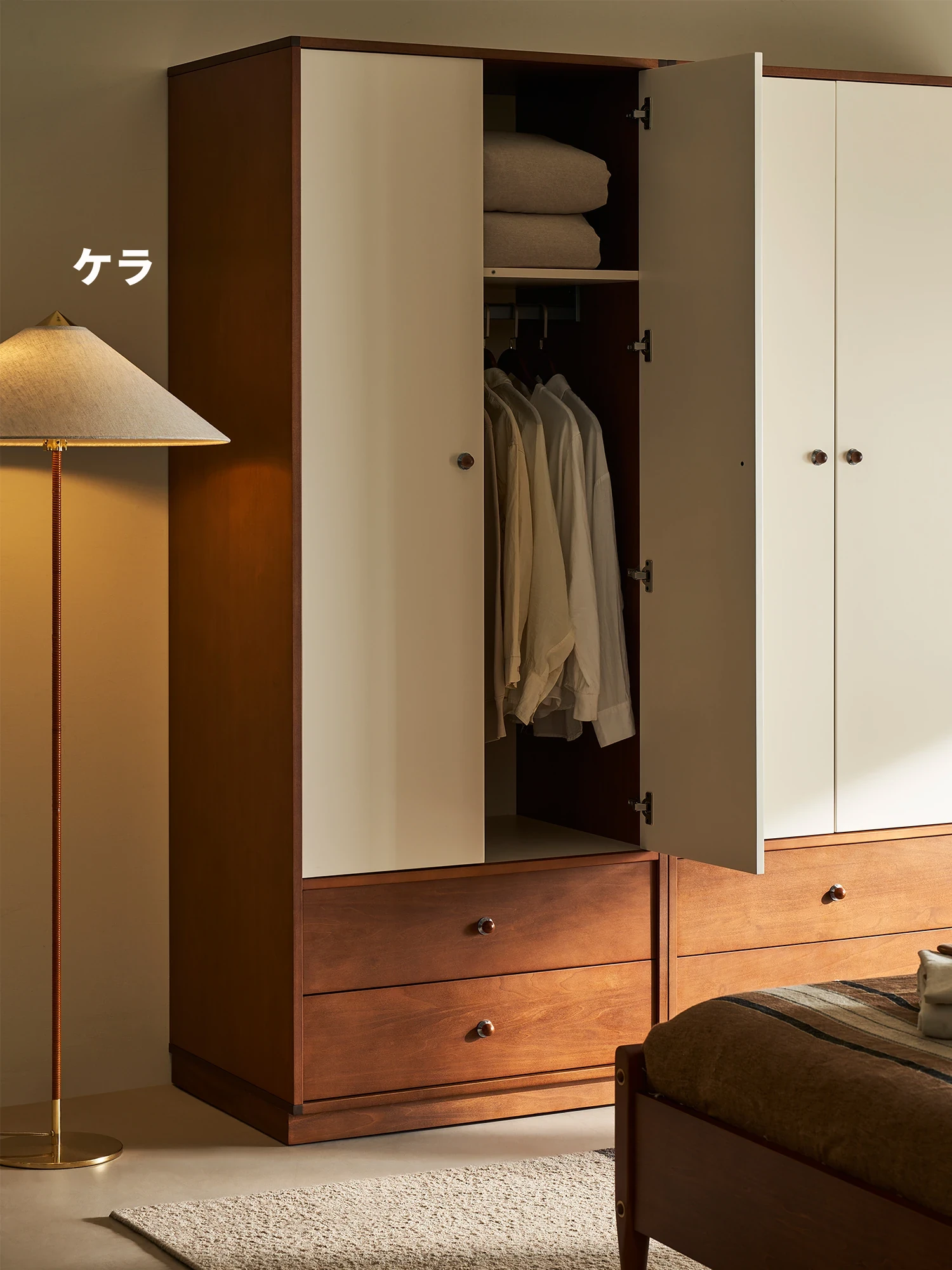 Kena可纳 隅白実木ワードローブ 家庭用寝室収納キャビネット 中古レトロデザイン 2ドア主寝室用キャビネット Z - おしゃれで機能的な収納力を実現!あなたの寝室を美しく整えます。
