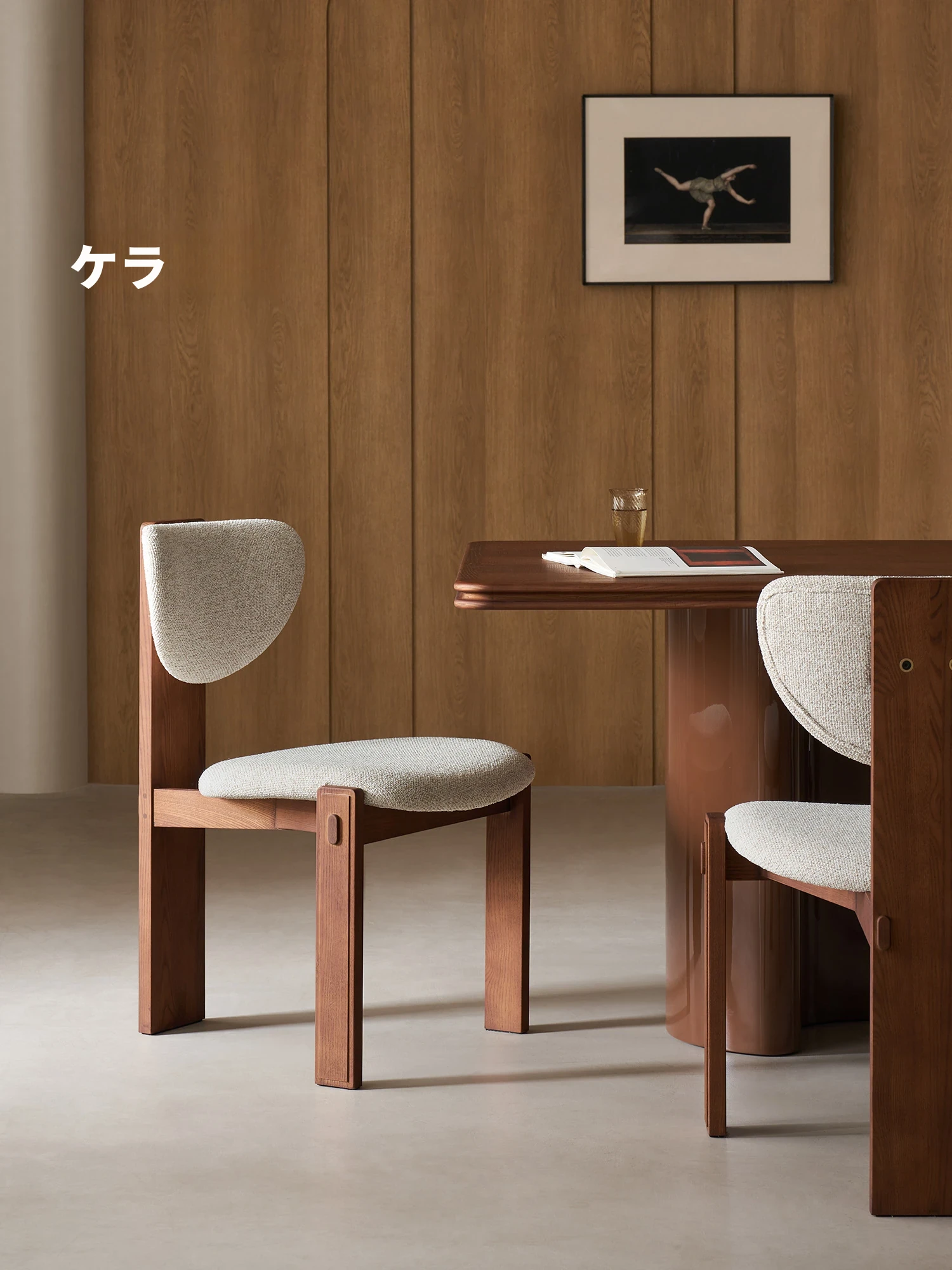 Kena可纳/希洛デザインのフランス風ビンテージソフトパッディングダイニングチェア - 無垢材とファブリック使用、シンプルでエレガントなリビングにぴったり!デザイナーZの手による特別な一品。