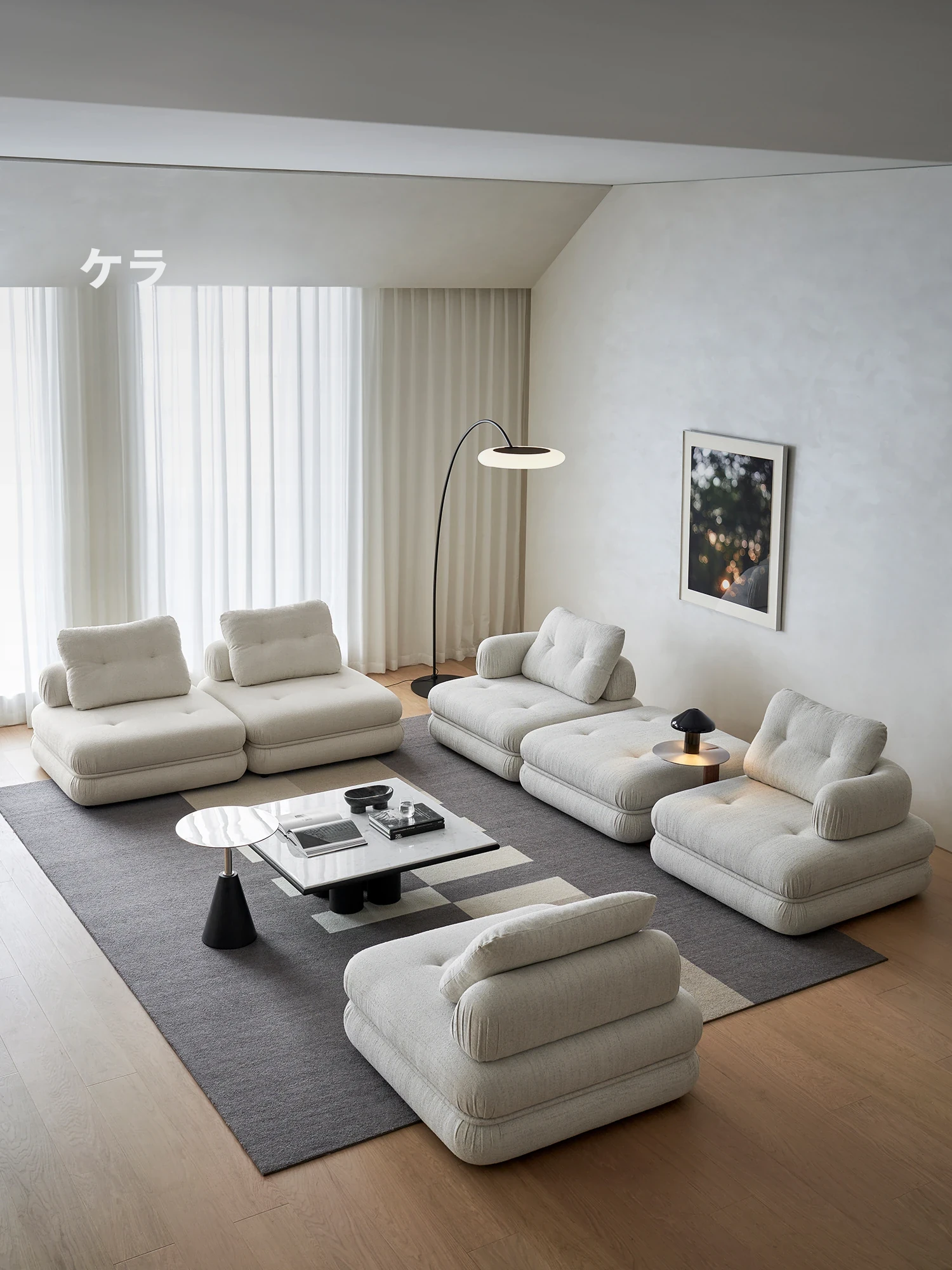 Kena可纳/モダンシンプルな布製ソファー - 豆腐ブロックモジュール3人掛け - 高級シェニール素材使用で快適さ抜群!おしゃれなリビングにぴったりの組み合わせ。