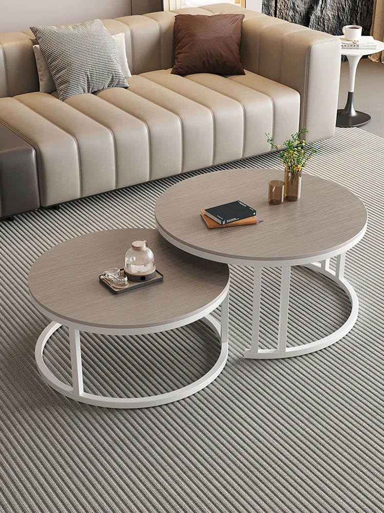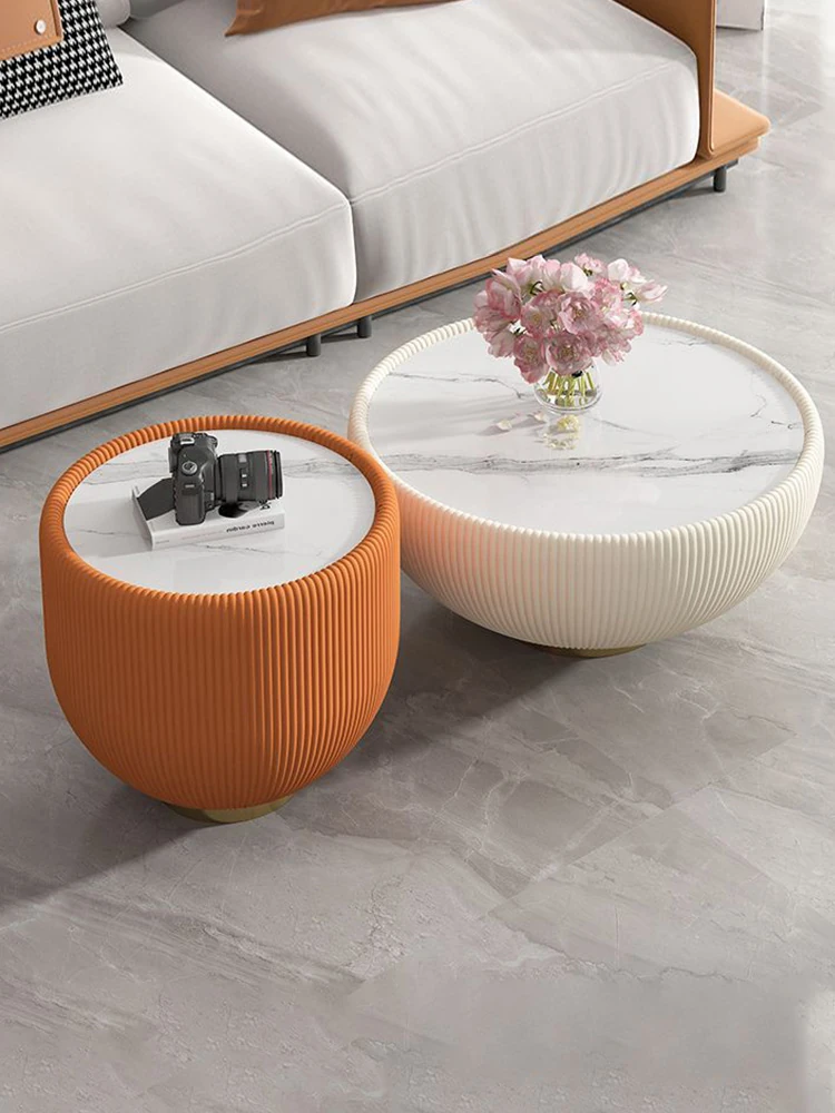 人気のリビングルームにぴったり!小型住宅向けの軽やかなラグジュアリー、クリームカラーの岩板テーブルセット。創造的な丸型デザインで、家庭用に最適な小さなお茶テーブル。おしゃれで機能的な空間を演出します!