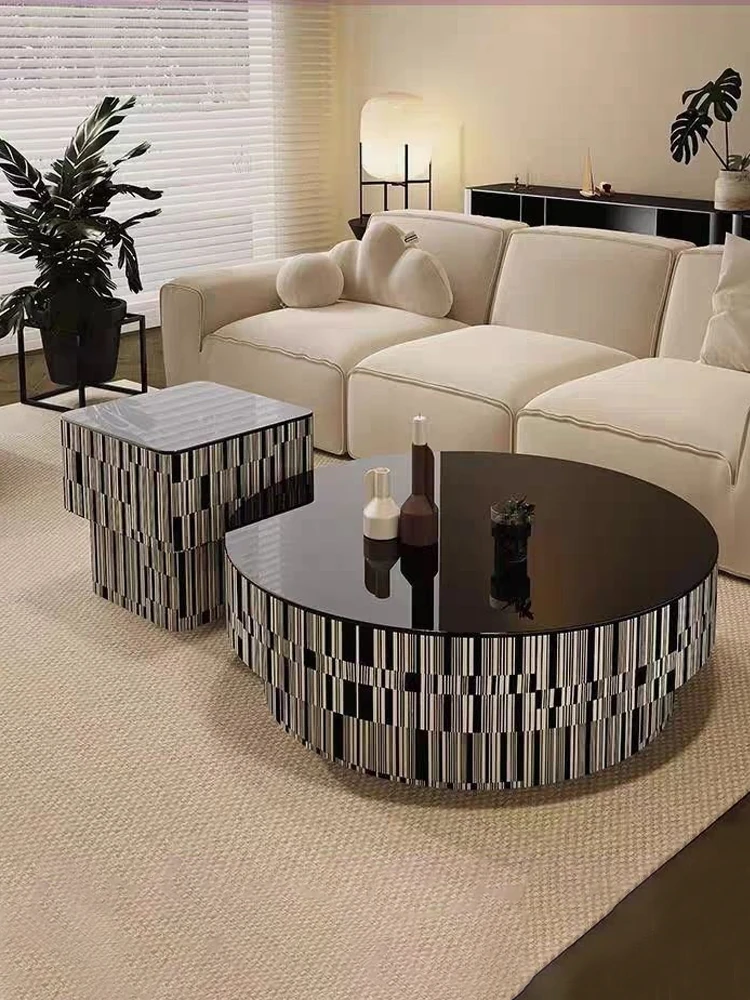 イタリアンスタイルのラグジュアリーコーヒーテーブル - 新作!小型リビングにぴったりの丸型デザイン、モダンでシンプルな組み合わせで、人気のインテリアを実現。おしゃれで機能的な空間を演出します!