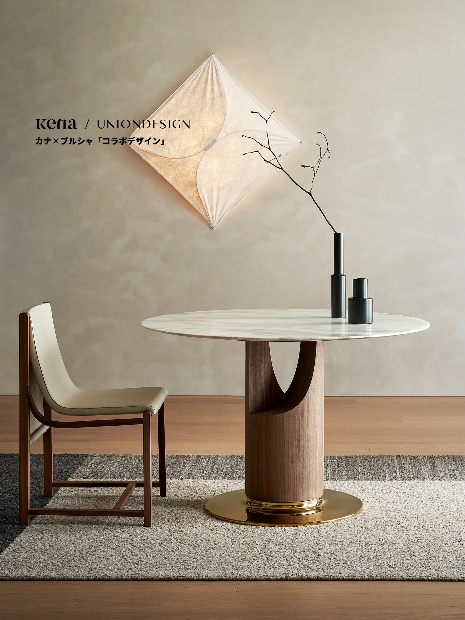 Kena可纳の天然大理石ラウンドダイニングテーブル - デザイナーコラボの回転プレート付き、家族団らんに最適なスタイリッシュな食卓。Z